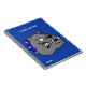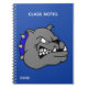 Une tête de dessin animé d'un chien taureau gris orne le devant de ce carnet en spirale bleue, avec un texte personnalisé blanc prêt à être personnalisé. Idéal pour l'école, la maison ou le bureau.