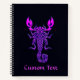 Icône Scorpion. Icône violette inspirée du design de noeud celtique. Couleur arrière - plan personnalisée. Texte personnalisé.