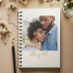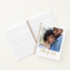 The Script Across Us notebook showcases a centered full-width photo with a flowing cursive phrase reading This is Us across the bottom. A soft gold line and heart accent add warmth, while the clean white background creates a modern, minimal design filled with emotion.