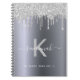 Un faux arrière - plan métallique à l'apparence argentée avec des gouttes de parties scintillant faux argent, la peinture goutte à goutte. Personnalisez et ajoutez un nom, une lettre monogramme et un titre. Le nom est écrit en blanc avec un grand script de style à la main moderne avec des swashes. Parfait pour l'école, le travail ou comme journal secret. Pour que les swashes ne suppriment que le nom de l'échantillon, laissez les espaces ou émoticônes devant et après le nom.