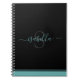Carnet personnalisé simple et moderne pour votre journalisation. L'élégant script design turquoise sur le noir correspond à la ligne design en couleur mais la compense dans le style, créant une torsion amusante à l'aspect minimaliste.