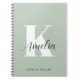 Carnet vert sauge moderne avec votre monogramme initial en gras et grande typographie blanche et votre nom dans un script de signature calligraphie élégant.