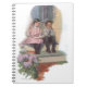 Ce petit garçon se fait éduquer alors qu'il est assis sur les marches avec sa sœur intelligente. Magnifique illustration de livre à planches en couleur de 1909.