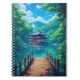 Step into a world of breathtaking tranquillity with this vibrant, anime-inspired Japanese landscape art print. This stunning piece captures a picturesque wooden pagoda nestled over a sparkling, azure lake, surrounded by a lush, emerald forest.