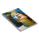 "Selene" - Les Femmes Dans L'Eau. Dans cette scène d'eau féminine aux beaux-arts sereine et colorée, une belle femme aux longs cheveux rouges flotte dans une mer tourbillonnante bleue. La lumière du soleil ébranle son visage paisible sous la surface de l'eau. Les yeux fermés et le visage levé, elle absorbe la lumière, incarnant une figure forte, résiliente et inspirante dans cette image multicolore.