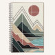 Geometric mountain landscape design combines clean lines and abstract shapes to create a modern, minimalist work of art. Inspired by the natural beauty of mountains, sunshine, and lakes, this artwork features a sophisticated earth color palette including warm terracotta, sage green, soft beige, and deep dark tones.