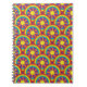 This notebook features a trippy graphic pattern inspired by the 1970s with overlapping disks in a rainbow of colors centered with a slightly twisted rayed sun. Edit design to change the background hue.