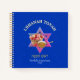 Elégant journal du Nouvel An juif ROSH HASHANAH bleu israélien personnalisé, montrant une étoile de David avec un bol de pommes et un plat de miel. Ci-dessus se trouve le salut L'SHANAH TOVAH, écrit dans la typographie blanche et faux or, suivi par ROSH HASHANAH dans le texte hébreu en bas. En dessous, il y a un nom d'espace réservé et une année. Dans l'arrière - plan est un motif subtil carrelé qui dit Rosh Hashanah. TOUT TEXTE (à l'exclusion du texte arrière - plan) EST PERSONNALISABLE, de sorte que vous pouvez créer votre propre texte préféré et les orthographes (par exemple Shana Tova), et ajouter votre nom et année, avec les modèles faciles à utiliser. Choisissez parmi une large sélection de cartes de célébration juives élégantes et personnalisables et de cadeaux conçus par Berean Designs. Planificateur correspondant, carnet et autres cadeaux disponibles.