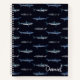This Shark Invasion pattern has sketch style drawings of Mako, Blue and Black Dogfish sharks on a dark blue and black textured background. I was inspired to create this design by the recent shark sightings at California beaches. Also looks nice by changing the solid blue, custom background color to white to create a charcoal grey background. Click the CUSTOMIZE button to make any changes. Cool school or office notebook for any shark lover!