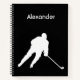 Carnet de hockey personnalisé en noir et blanc avec joueur de hockey - un cadeau de hockey sur glace utile pour prendre des notes après l'entraînement ou créer un journal.