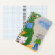 A fun personalized spiral notebook featuring some silly cats on the front and a polka dot on the back . Great for home , school or the office .