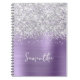 Customisez le script de calligraphie de style manuscrit moderne pour créer votre propre carnet vierge. Ajoutez une initiale de monogramme pour créer une combinaison initiale de prénom. Il y a de nombreux styles de police pour personnaliser votre carnet vierge. Parties scintillant en faux argent et art numérique en feuille de métal brossé violet clair (il sera imprimé comme une photo).