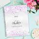 A faux silver metallic looking background decorated with purple faux glitter dust. Personalize and add your first name, monogram initials, full name and a year.
