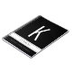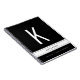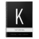 Un carnet personnalisé avec une couverture en noir et blanc avec une grande énorme lettre initiale moderne, nom, carnet ou titre de journal ou sujet imprimé sur le devant en polices chic et modernes. Taille de la page : 6,5 po x 8,75 po.