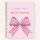 Un carnet de croquis pour l'école. Un arrière - plan rose pâle et doux, décoré d'un grand arc à carreaux. Personnalisez et ajoutez un nom.