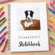Un élégant arrière - plan blanc. Personnalisez et ajoutez votre propre photo de votre chien ou animal de compagnie. Ajoutez votre nom et un titre. Le titre est écrit avec un script de style moderne écrit à la main. Lettres de couleur noire. Un carnet pour dessiner votre chien, prendre des notes ou pour les devoirs scolaires.