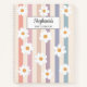 Ce joli carnet de croquis présente des marguerites blanches sur un arrière - plan rayé aux couleurs pastel. Facilement personnalisable avec votre nom. Idéal pour retourner à l'école ou comme cadeau.