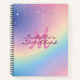 Un carnet tendance aux couleurs étincelantes avec une parties scintillant mixte turquoise, rose et mauve et jaune clair avec de nombreuses petites étoiles. Vous pouvez personnaliser ce carnet en ajoutant votre nom et votre initiale.