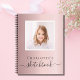 Un or rose, arrière - plan rose vif. Personnalisez et ajoutez votre propre photo. Ajoutez un nom et un titre. Le titre est écrit avec un script de style moderne écrit à la main avec des swashes. Lettres de couleur noire. Un carnet pour dessiner vos enfants, pour votre bureau à domicile.