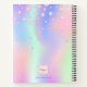 Un arrière - plan tendance aux couleurs irisées avec des couleurs pastel unicorne et arc-en-ciel rose, violet, or rose, vert menthe. Décoré de faux diamants roses. Personnalisez et ajoutez un nom et une lettre monogramme. Le titre : Sketchbook est écrit avec de grandes lettres en caractères gras. Le nom est écrit avec un script de style moderne écrit à la main avec des swashes. Pour que les swashes ne suppriment que le nom de l'échantillon, laissez les espaces ou émoticônes devant et après le nom. Utilisez-le comme carnet d'esquisses, dessin, prise de notes, idées artisanales, école, travail à domicile.