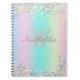 Sketchbook Unicorn Holographic Parties scintillant Carnet - Un carnet à la mode couleur étincelante avec mélange de turquoise, rose et mauve et parties scintillant jaune clair. Vous pouvez personnaliser ce carnet en ajoutant votre nom et vos initiales.