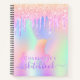 Un arrière - plan tendance aux couleurs irisées avec des couleurs pastel unicorne et arc-en-ciel rose, violet, or rose, vert menthe. Décoré avec des gouttes de parties scintillant en or rose, rose, violet et une licorne de couleur arc-en-ciel. Personnalisez et ajoutez un nom. Le titre : Sketchbook est écrit avec un script à la main tendance avec des swashes. Pour que les swashes ne suppriment que le nom de l'échantillon, laissez les espaces ou émoticônes devant et après le nom. Utilisez-le comme carnet d'esquisses, dessin, prise de notes, idées artisanales, école, travail à domicile.
