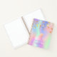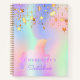 Un arrière - plan holographique branché aux couleurs pastel unicorne et arc-en-ciel rose, violet, vert menthe. Décoré d'étoiles dégoulinantes et d'une licorne de couleur arc-en-ciel. Personnalisez et ajoutez un nom. Le titre : Sketchbook est écrit avec une écriture manuscrite tendance. Utilisez-le comme carnet d'esquisses, dessin, prise de notes, idées artisanales, école, travail à domicile.