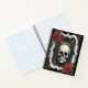 An ivory skull with red roses is surrounded by a white frame on a textured black background on this beautifully Gothic notebook.