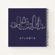 Ce dessin présente une esquisse dessinée à la main de l'horizon d'Atlanta sur un arrière - plan violet.