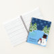 Célébrez la saison de Noël avec ce carnet de vacances personnalisé. Le carnet comprend un manchot dans un casquette douillet, un bonhomme de neige souriant, des arbres couverts de neige, des flocons de neige tombants et un étang glacé. En bas à gauche, vous pouvez customiser avec votre nom ou le nom de votre enfant ainsi que le jour férié et l'année. Ce carnet sera chéri pour de nombreuses saisons d'hiver à venir !