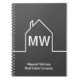 Ce carnet de courtier personnalisé gris foncé est simple et subtil avec votre monogramme et nom de société immobilière en blanc. Il présente un cadre blanc minimaliste chic d'une maison. Cadeaux de marketing d'entreprise de l'immobilier moderne.