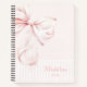 Carnet rose mignon et charmant avec un design arrière - plan à rayures roses douces et une illustration fine de l'arc.