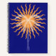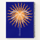 Un palmier d'art en ligne blanche, surmonté d'un soleil orange avec des rayons ondulés, reposant sur un fond bleu violet. Choisissez parmi le carnet de croquis, le journal des puces, la liste de contrôle, le papier graphique, le livre de recettes ou les lignes en différentes largeurs et couleurs. Choisissez également une couleur de colonne vertébrale pour customiser davantage votre look carnet.