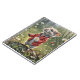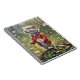 Mignonne souris portant une veste rouge et tenant un dandelion moelleux dans un jardin.