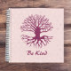 Ce design est composé d'un arbre de vie, aux racines profondes, silhouetté dans un bordeaux violet. L'arrière - plan est un subtil motif vintage de petits coeurs. Le texte "Be Kind" apparaît en dessous. L'arbre de vie est un archétype dans de nombreuses mythologies, religions, et traditions philosophiques et sacrées. Assurez-vous de choisir votre couverture et votre style de page - de nombreuses options sont disponibles pour le papier. Vous pouvez également modifier le texte "Be Kind" sur le devant et inclure votre nom, vos initiales ou votre message différent à la place.