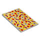 Whimsical design drawn in a retro style featuring souvenirs from a Spanish holiday; a wrought iron guitar, lacy fan and red rose. A customizable design in black, white, red and golden yellow for you to personalise with your own text, images and ideas. An original digital art image.