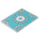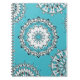Un carnet en spirale avec mon Mandala Motif 1, imprimé sur un arrière - plan bleu. Cette version est centrée sur mon Design 3 Mandala.