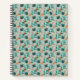 Spiral-bound notebook with a floral pattern of pink roses and green leaves on a pale blue background. The front and back covers share the same design.