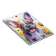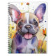 Image art numérique d'un Bulldog français à l'expression ludique, entouré de fleurs vives et colorées. L'arrière - plan présente des éclaboussures de couleurs vives, donnant à la scène une atmosphère animée et énergique.