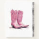 Carnet Spiral Coastal Cowgirl. © Radenbrea Studios à Zazzle. Un carnet en spirale avec une paire de bottes de cowgirl roses et un casquette de cowgirl sur la couverture. Les bottes et les casquette sont sur la plage avec des étoiles de mer, des rochers et des coquillages. Idéal pour toutes sortes de projets à la maison, au bureau ou à l'école.