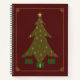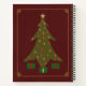 Ce design élégant est orné d'un sapin de Noël courbé de bijoux ornés de bijoux et de cadeaux en dessous, le tout entouré d'une délicate bordure de filigrane d'or avec des bijoux aux coins.