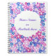 Un très joli carnet en spirale à personnaliser, avec un motif fleuri tout en rose, bleu et violet, d'un collage de papier peint à la main, par Judy Adamson. D'autres produits avec ce design sont disponibles dans mon magasin.