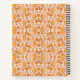 Spiral notebook with an orange pattern of beer mugs and pretzels on a peach background, displayed from front and back. Playful and festive vibe.