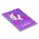 Gardez trace de vos notes importantes avec ce mignon carnet de licorne. Ce design présente l'image d'une adorable licorne dressée contre un arrière - plan rose et violet pétillant. Ajoutez votre nom à ce produit avec l'outil facile à utiliser.