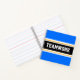 Ce design sportif et athlétique présente un texte TEAMWORK gras à l'intérieur d'une large bande noire mise en évidence avec des doubles rayures de course orange jaune et blanc sur des bandes extérieures bleues vives. Le texte de ce design peut être personnalisé.