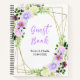 This beautiful and elegant wedding guest book features watercolor purple flowers and foliage on a gold geometric frame. The text combines handwritten script and serif fonts for a stylish and modern look. This is perfect for a spring rustic wedding.