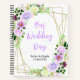 This beautiful and elegant notebook would make a great wedding planner, photo album, guest book and more. The design features watercolor purple flowers and foliage on a gold geometric frame. The text combines handwritten script and serif fonts for a stylish and modern look. This is perfect for a spring rustic wedding.