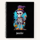 Cahier à spirale avec une illustration d'un squelette humoristique. Porte un haut-de-forme, tient un verre. Il a un grand sourire sur le visage. Amusement mignon et effrayant pour Halloween.