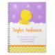 Ce carnet mignon et amusant présente un adorable canard jaune en bulles de bain savonneuses blanches sur un arrière - plan violet clair avec un ruban orange et des rayures jaunes. Le texte combine écriture manuscrite et polices sans serif pour un look élégant et moderne. Il peut être personnalisé avec les statistiques de naissance de votre bébé, comme le nom, la taille, la date et l'heure de naissance, ou si vous souhaitez le donner comme cadeau de douche vous pouvez modifier et supprimer du texte.