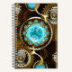 Turquoise lenses with antique watch with brass gears and golden keys on rusty, brown background. Steampunk style.